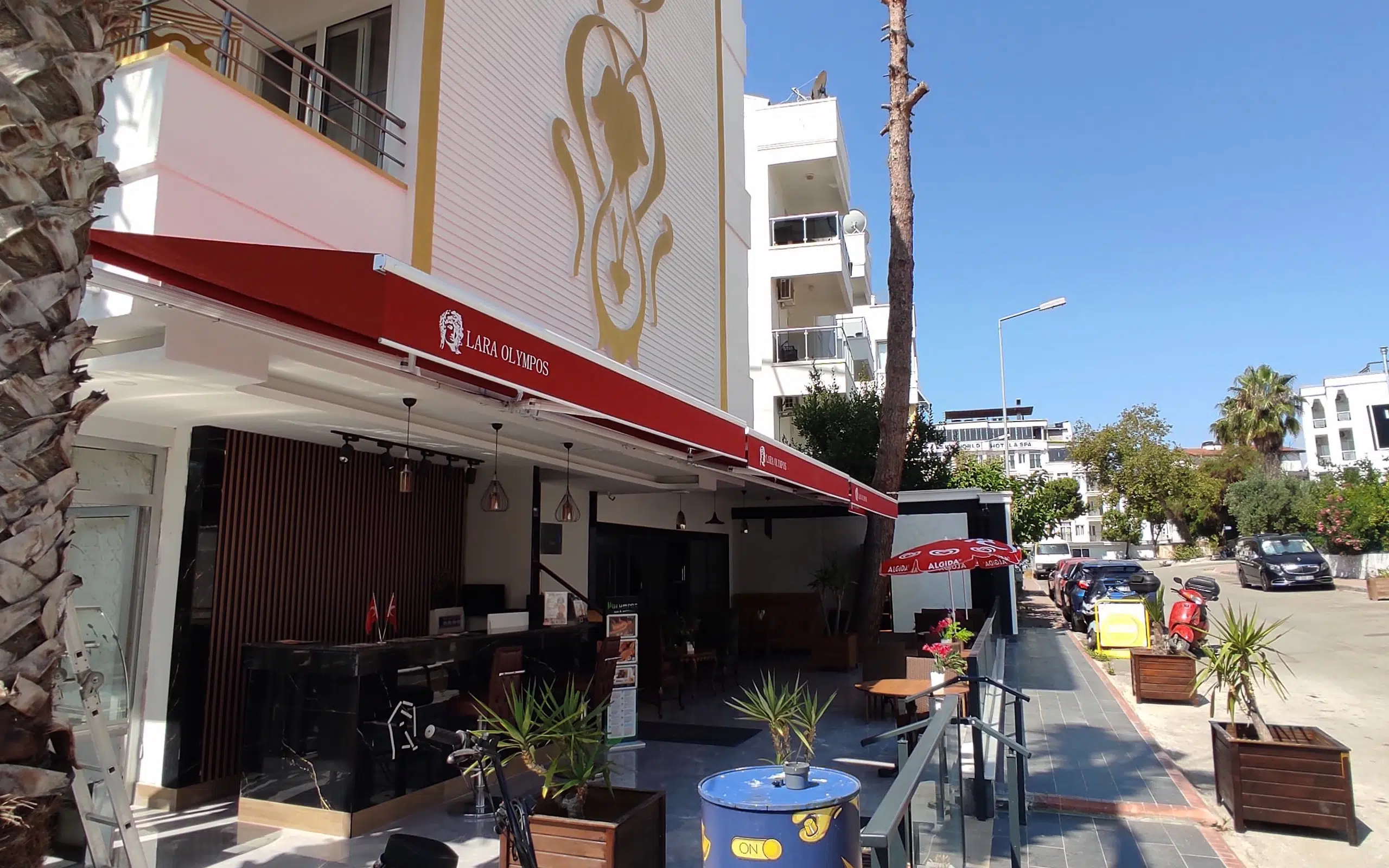 İşletmemiz lara merkez örnekköy mevkiinde şehir merkezindedir. Havaalanına 8 km, şehir merkezine 10 km sahil bandına sadece 300 mt ve ünlü Lara plajlarına 1,5km mesafededir. Tesisimizin misafirleri 6 nolu Larena Beach ücretsiz kullanabilmektedir.Hadrianus kapısına 13 km, Karaalioğlu parkına 12 km, Kaleiçi Mermerli Plajına 15 km mesafededir. Tüm odalarda düz ekran tv, minibar, ücretsiz Wi-Fi bağlantısı, klima, ve saç kurutma makinesi bulunmaktadır.Alışveriş mekanlarına , restaurantlara ve showroom lara yürüme mesafesindedir. Tesisimizde 1 adet yüzme havuzu ve bahçe alanı mevcuttur. Sahile 5 dk yürüme mesafesesindedir. Size Özel Rezervasyon Fırsatlarımızdan YararlanınLara Olympos
